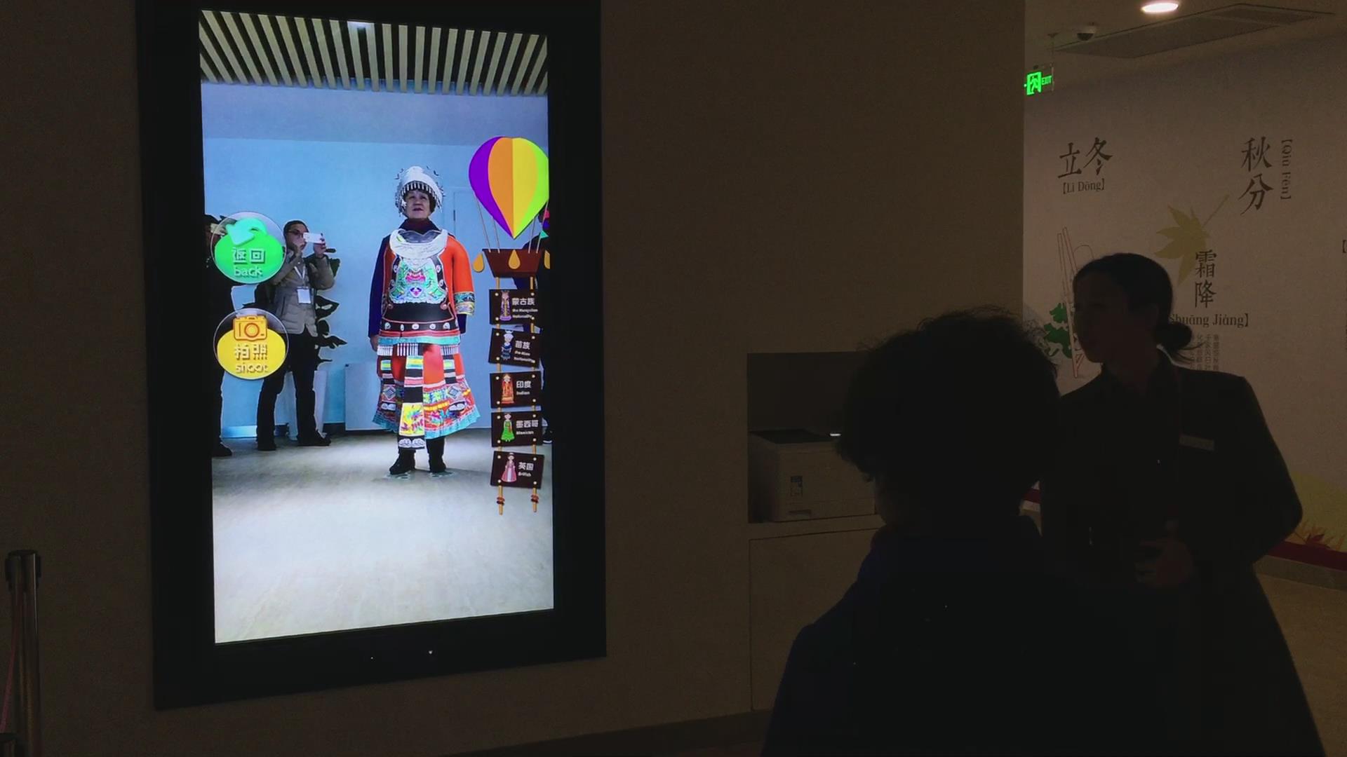 大屏虛擬換衣包含大屏顯示器,平板終端以及攝像機(jī)三塊構(gòu)成通常作為鏡子使用的大顯示器上,客戶可根據(jù)自己喜歡的樣式點(diǎn)擊想要的衣服,然后利用擴(kuò)增現(xiàn)實(shí)技術(shù)把衣服穿在身上的效果顯示出來。而此時,在另一頭的電視屏幕上,會出現(xiàn)你親手搭配的即時畫面,所選單品的信息也會自動顯示在屏幕左下角。如若不滿意,可Restart重新選擇單品更換搭配。