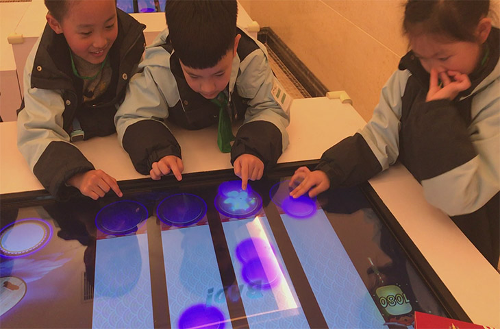 答:與傳統(tǒng)的靜態(tài)廣告媒介相對比,桌面互動(dòng)投影使每個(gè)人都能參與互動(dòng)。當(dāng)人們用手參與桌面互動(dòng)時(shí),投影畫面不停發(fā)生改變,不斷吸引更多的人進(jìn)行游戲。